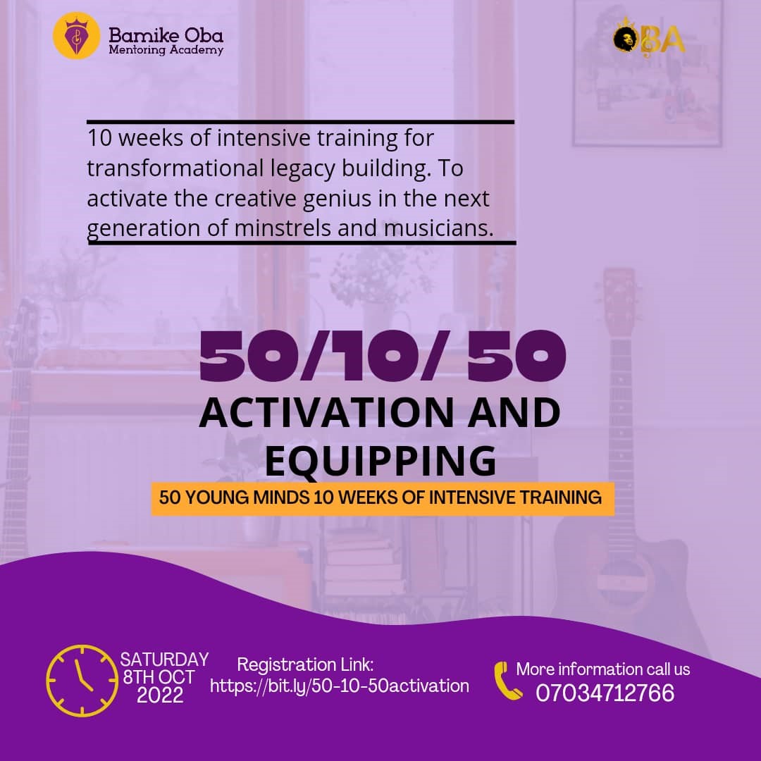 Ahead of her Golden Jubilee, the worship minister who doubles as a certified leadership coach has launched a project “50/10/50activate” to equip and train 50 young minds for 10 weeks as a give-back in celebrating 50 years of God’s faithfulness in her life. The participants will undergo intensive training in guitar playing, songwriting, and poetry/eulogy mastery.